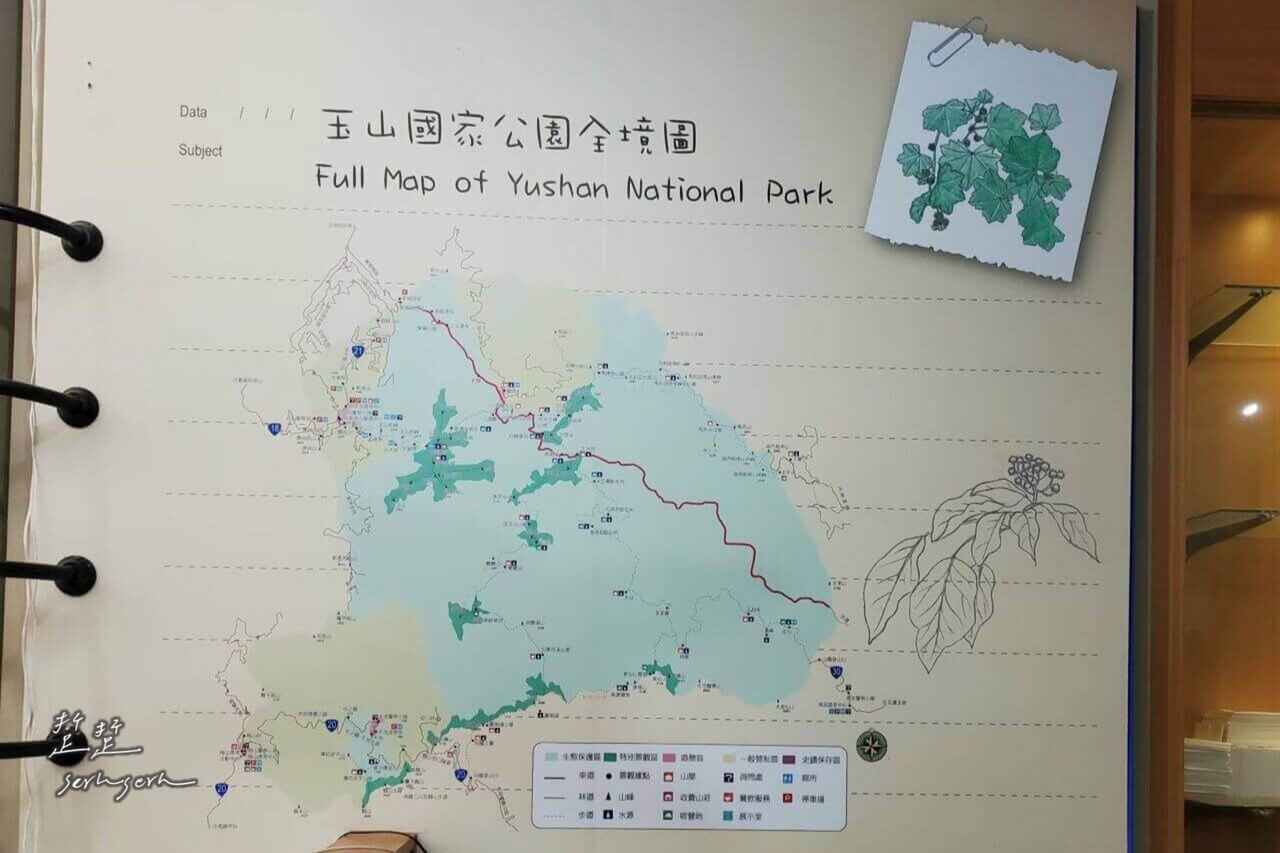看了這張玉山國家公園全境圖,才意識到玉山國家公園是多麼幅員遼闊,從隔著玉山群峰的南投新中橫公路起,到數十公里外的南橫,這一大片的範圍都包含在內。